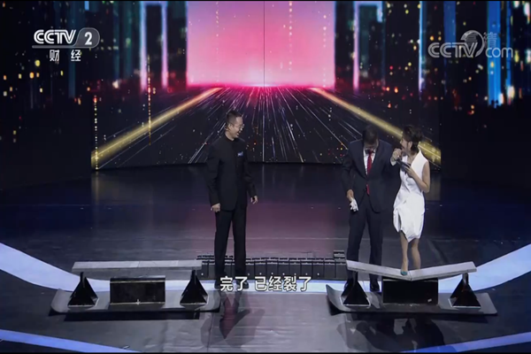 去年央視《創(chuàng)業(yè)英雄會(huì)》來西安選人,今年8月10日,鄧明科團(tuán)隊(duì)去北京錄制節(jié)目,節(jié)目10月9日播出。節(jié)目現(xiàn)場(chǎng),鄧明科準(zhǔn)備了一塊普通混凝土板、一塊高延性混凝土板和500公斤的砝碼,進(jìn)行了加載對(duì)比實(shí)驗(yàn)。
