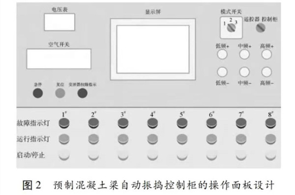 在使用附著式振動器進行振搗時,其振搗質量主要取決于控制振動器的施工人員,若該施工人員經驗豐富,技術較好,則振搗的混凝土質量較好。反之,則混凝土質量較差。因此通過自動控制來代替人為操作,可有效保證混凝土的振搗質量。對預制梁的混凝土振搗控制柜進行改進,使其能自動控制開啟、關閉和振搗時間,并能遠程遙控,提高澆筑質量節省人力降低生產成本。